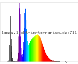 24-LED UV emitting LED spot with E27. It is labelled „REPTILE UVB 10.0 8W“ on the lamp socket and the otherwise neutral box. It contains 6 golden UVB LEDs, 4 yellow standard LEDs for white light and 4 white UVA LEDs.