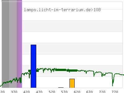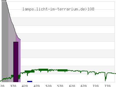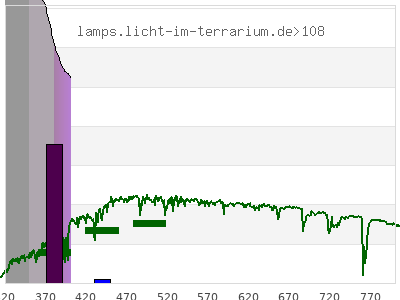 total ( 0 nm - 0 nm) 60.4 µW/cm² = 0.604 W/m² UVC ( 0 nm - 280 nm) 46.1 µW/cm² = 0.461 W/m² non-terrestrial ( 0 nm - 290 nm) 48.7 µW/cm² = 0.487 W/m² total2 ( 250 nm - 880 nm) 24.7 µW/cm² = 0.247 W/m² UVB (EU) ( 280 nm - 315 nm) 6.8 µW/cm² = 0.068 W/m² UVB (US) ( 280 nm - 320 nm) 7.5 µW/cm² = 0.075 W/m² UVA+B ( 280 nm - 380 nm) 13.1 µW/cm² = 0.131 W/m² Solar UVB ( 290 nm - 315 nm) 4.21 µW/cm² = 0.0421 W/m² UVA D3 regulating ( 315 nm - 335 nm) 2.51 µW/cm² = 0.0251 W/m² UVA (EU) ( 315 nm - 380 nm) 6.3 µW/cm² = 0.063 W/m² UVA2 (medical definition) ( 320 nm - 340 nm) 2.35 µW/cm² = 0.0235 W/m² UVA (US) ( 320 nm - 380 nm) 5.61 µW/cm² = 0.0561 W/m² UVA1 (variant) ( 335 nm - 380 nm) 3.79 µW/cm² = 0.0379 W/m² UVA1 (medical) ( 340 nm - 400 nm) 4.42 µW/cm² = 0.0442 W/m² vis. UVA ( 350 nm - 380 nm) 2.29 µW/cm² = 0.0229 W/m² VIS Rep3 ( 350 nm - 600 nm) 3.45 µW/cm² = 0.0345 W/m² VIS Rep4 ( 350 nm - 700 nm) 3.45 µW/cm² = 0.0345 W/m² purple ( 380 nm - 420 nm) 1.16 µW/cm² = 0.0116 W/m² VIS ( 380 nm - 780 nm) 1.16 µW/cm² = 0.0116 W/m² VIS2 ( 400 nm - 680 nm) 0 µW/cm² = 0 W/m² PAR ( 400 nm - 700 nm) 0 µW/cm² = 0 W/m² tmp ( 400 nm - 1100 nm) 0 µW/cm² = 0 W/m² blue ( 420 nm - 490 nm) 0 µW/cm² = 0 W/m² green ( 490 nm - 575 nm) 0 µW/cm² = 0 W/m² yellow ( 575 nm - 585 nm) 0 µW/cm² = 0 W/m² orange ( 585 nm - 650 nm) 0 µW/cm² = 0 W/m² red ( 650 nm - 780 nm) 0 µW/cm² = 0 W/m² IR2 ( 655 nm - 685 nm) 0 µW/cm² = 0 W/m² IRA ( 700 nm - 1400 nm) 0 µW/cm² = 0 W/m² IRB ( 1400 nm - 3000 nm) 0 µW/cm² = 0 W/m²