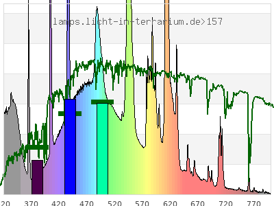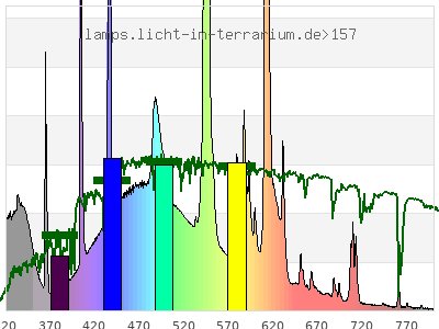 total ( 0 nm - 0 nm) 846 µW/cm² = 8.46 W/m² UVC ( 0 nm - 280 nm) 0.874 µW/cm² = 0.00874 W/m² non-terrestrial ( 0 nm - 290 nm) 1.13 µW/cm² = 0.0113 W/m² total2 ( 250 nm - 880 nm) 846 µW/cm² = 8.46 W/m² UVB (EU) ( 280 nm - 315 nm) 13.2 µW/cm² = 0.132 W/m² UVB (US) ( 280 nm - 320 nm) 21.7 µW/cm² = 0.217 W/m² UVA+B ( 280 nm - 380 nm) 102 µW/cm² = 1.02 W/m² Solar UVB ( 290 nm - 315 nm) 12.9 µW/cm² = 0.129 W/m² UVA D3 regulating ( 315 nm - 335 nm) 36.6 µW/cm² = 0.366 W/m² UVA (EU) ( 315 nm - 380 nm) 88.4 µW/cm² = 0.884 W/m² UVA2 (medical definition) ( 320 nm - 340 nm) 38.6 µW/cm² = 0.386 W/m² UVA (US) ( 320 nm - 380 nm) 79.9 µW/cm² = 0.799 W/m² UVA1 (variant) ( 335 nm - 380 nm) 51.8 µW/cm² = 0.518 W/m² UVA1 (medical) ( 340 nm - 400 nm) 52.9 µW/cm² = 0.529 W/m² vis. UVA ( 350 nm - 380 nm) 25.2 µW/cm² = 0.252 W/m² VIS Rep3 ( 350 nm - 600 nm) 580 µW/cm² = 5.8 W/m² VIS Rep4 ( 350 nm - 700 nm) 744 µW/cm² = 7.44 W/m² purple ( 380 nm - 420 nm) 51.6 µW/cm² = 0.516 W/m² VIS ( 380 nm - 780 nm) 739 µW/cm² = 7.39 W/m² VIS2 ( 400 nm - 680 nm) 700 µW/cm² = 7 W/m² PAR ( 400 nm - 700 nm) 707 µW/cm² = 7.07 W/m² tmp ( 400 nm - 1100 nm) 732 µW/cm² = 7.32 W/m² blue ( 420 nm - 490 nm) 207 µW/cm² = 2.07 W/m² green ( 490 nm - 575 nm) 236 µW/cm² = 2.36 W/m² yellow ( 575 nm - 585 nm) 25.7 µW/cm² = 0.257 W/m² orange ( 585 nm - 650 nm) 177 µW/cm² = 1.77 W/m² red ( 650 nm - 780 nm) 41.4 µW/cm² = 0.414 W/m² IR2 ( 655 nm - 685 nm) 12.3 µW/cm² = 0.123 W/m² IRA ( 700 nm - 1400 nm) 25.2 µW/cm² = 0.252 W/m² IRB ( 1400 nm - 3000 nm) 0 µW/cm² = 0 W/m²