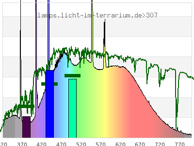 Erythema 2.1 UV-Index Pyrimidine dimerization of DNA 10.2 µW/cm² Photoceratitis 2.86 µW/cm² Photoconjunctivitis 1.46 µW/cm² DNA Damage 1.83 Vitamin D3 5.65 µW/cm² Photosynthesis 1240 µW/cm² Luminosity 4840 lx Human L-Cone 718 µW/cm² Human M-Cone 612 µW/cm² Human S-Cone 430 µW/cm² CIE X 657 µW/cm² CIE Y 670 µW/cm² CIE Z 800 µW/cm² PAR PPFD 82.3 µmol/m²/s Extinction preD3 45.5 e-3*m²/mol Extinction Tachysterol 141 e-3*m²/mol Exctincition PreD3 29300 m²/mol Extinction Lumisterol 20.1 m²/mol Exctincition Tachysterol 190000 m²/mol Extinction 7DHC 23.3 m²/mol L-Cone 602 µW/cm² M-Cone 638 µW/cm² S-Cone 732 µW/cm² U-Cone 232 µW/cm² UVR - ICNIRP 2004 2.73 Rel Biol Eff Melatonin Supression 594 µW/cm² Blue Light Hazard 479 µW/cm² (99 µW/cm² per 1000 lx) CIE 174:2006 PreVit D3 6.03 µW/cm² Lumen Reptil 5090 "pseudo-lx" Vitamin D3 Degradation 5.81 µW/cm² Actinic UV 2.71 µW/cm² (5.6 mW/klm) Exctincition Lumisterol 23300 m²/mol Exctincition 7DHC 25700 m²/mol Exctincition Toxisterols 8520 m²/mol