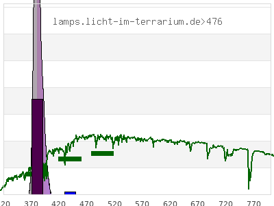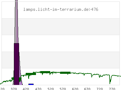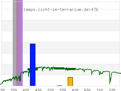 total ( 0 nm - 0 nm) 12.8 µW/cm² = 0.128 W/m² UVC ( 0 nm - 280 nm) 0 µW/cm² = 0 W/m² non-terrestrial ( 0 nm - 290 nm) 0 µW/cm² = 0 W/m² total2 ( 250 nm - 880 nm) 12.8 µW/cm² = 0.128 W/m² UVB (EU) ( 280 nm - 315 nm) 0 µW/cm² = 0 W/m² UVB (US) ( 280 nm - 320 nm) 0 µW/cm² = 0 W/m² UVA+B ( 280 nm - 380 nm) 5.88 µW/cm² = 0.0588 W/m² Solar UVB ( 290 nm - 315 nm) 0 µW/cm² = 0 W/m² UVA D3 regulating ( 315 nm - 335 nm) 0 µW/cm² = 0 W/m² UVA (EU) ( 315 nm - 380 nm) 5.88 µW/cm² = 0.0588 W/m² UVA2 (medical definition) ( 320 nm - 340 nm) 0 µW/cm² = 0 W/m² UVA (US) ( 320 nm - 380 nm) 5.88 µW/cm² = 0.0588 W/m² UVA1 (variant) ( 335 nm - 380 nm) 5.88 µW/cm² = 0.0588 W/m² UVA1 (medical) ( 340 nm - 400 nm) 12.7 µW/cm² = 0.127 W/m² vis. UVA ( 350 nm - 380 nm) 5.88 µW/cm² = 0.0588 W/m² VIS Rep3 ( 350 nm - 600 nm) 12.8 µW/cm² = 0.128 W/m² VIS Rep4 ( 350 nm - 700 nm) 12.8 µW/cm² = 0.128 W/m² purple ( 380 nm - 420 nm) 6.9 µW/cm² = 0.069 W/m² VIS ( 380 nm - 780 nm) 6.9 µW/cm² = 0.069 W/m² VIS2 ( 400 nm - 680 nm) 0.0891 µW/cm² = 0.000891 W/m² PAR ( 400 nm - 700 nm) 0.0891 µW/cm² = 0.000891 W/m² tmp ( 400 nm - 1100 nm) 0.0891 µW/cm² = 0.000891 W/m² blue ( 420 nm - 490 nm) 0 µW/cm² = 0 W/m² green ( 490 nm - 575 nm) 0 µW/cm² = 0 W/m² yellow ( 575 nm - 585 nm) 0 µW/cm² = 0 W/m² orange ( 585 nm - 650 nm) 0 µW/cm² = 0 W/m² red ( 650 nm - 780 nm) 0 µW/cm² = 0 W/m² IR2 ( 655 nm - 685 nm) 0 µW/cm² = 0 W/m² IRA ( 700 nm - 1400 nm) 0 µW/cm² = 0 W/m² IRB ( 1400 nm - 3000 nm) 0 µW/cm² = 0 W/m²