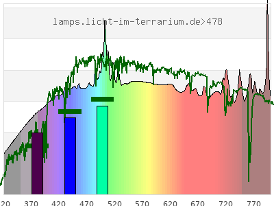 Erythema 3.23 UV-Index Pyrimidine dimerization of DNA 6.16 µW/cm² Photoceratitis 4.5 µW/cm² Photoconjunctivitis 2.19 µW/cm² DNA Damage 3.18 Vitamin D3 7.07 µW/cm² Photosynthesis 313 µW/cm² Luminosity 1170 lx Human L-Cone 174 µW/cm² Human M-Cone 146 µW/cm² Human S-Cone 83.7 µW/cm² CIE X 155 µW/cm² CIE Y 162 µW/cm² CIE Z 155 µW/cm² PAR PPFD 20.8 µmol/m²/s Extinction preD3 49.9 e-3*m²/mol Extinction Tachysterol 160 e-3*m²/mol Exctincition PreD3 37600 m²/mol Extinction Lumisterol 39.1 m²/mol Exctincition Tachysterol 207000 m²/mol Extinction 7DHC 49.5 m²/mol L-Cone 149 µW/cm² M-Cone 161 µW/cm² S-Cone 140 µW/cm² U-Cone 113 µW/cm² UVR - ICNIRP 2004 5.23 Rel Biol Eff Melatonin Supression 130 µW/cm² Blue Light Hazard 97.4 µW/cm² (83.4 µW/cm² per 1000 lx) CIE 174:2006 PreVit D3 7.34 µW/cm² Lumen Reptil 1270 "pseudo-lx" Vitamin D3 Degradation 5.2 µW/cm² Actinic UV 5.19 µW/cm² (44.4 mW/klm) Exctincition Lumisterol 44600 m²/mol Exctincition 7DHC 54900 m²/mol Exctincition Toxisterols 7560 m²/mol