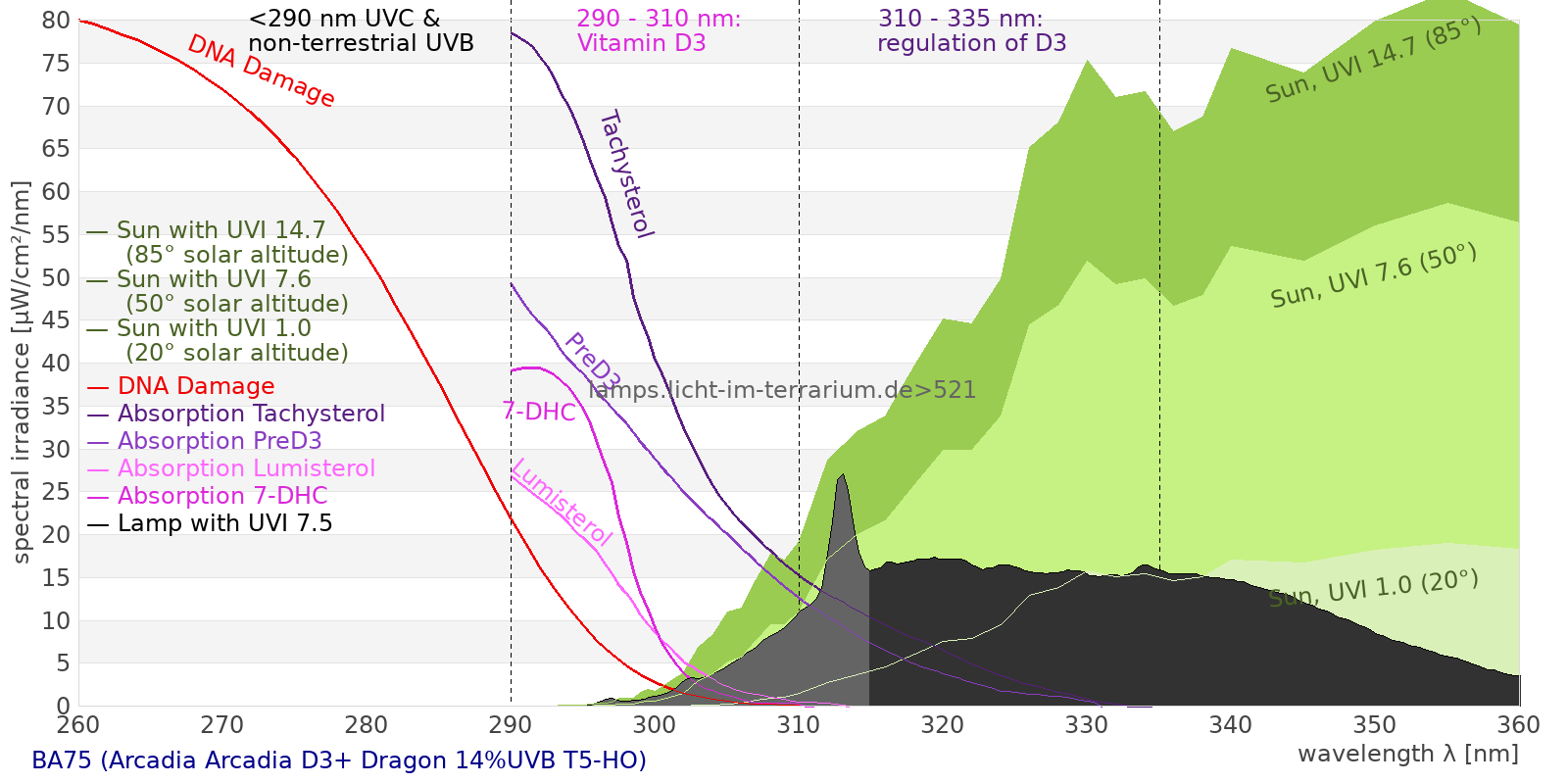 Spectrum #521 BA75 (Arcadia Arcadia D3+ Dragon 14%UVB T5-HO) Edit