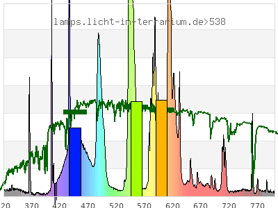 Erythema 0.046 UV-Index Pyrimidine dimerization of DNA 0.376 µW/cm² Photoceratitis 0.0823 µW/cm² Photoconjunctivitis 0.00597 µW/cm² DNA Damage 0.0149 Vitamin D3 0.167 µW/cm² Photosynthesis 121 µW/cm² Luminosity 654 lx Human L-Cone 99.8 µW/cm² Human M-Cone 77.4 µW/cm² Human S-Cone 35.3 µW/cm² CIE X 92.4 µW/cm² CIE Y 91.1 µW/cm² CIE Z 66 µW/cm² PAR PPFD 8.65 µmol/m²/s Extinction preD3 1.25 e-3*m²/mol Extinction Tachysterol 4.46 e-3*m²/mol Exctincition PreD3 636 m²/mol Extinction Lumisterol 0.295 m²/mol Exctincition Tachysterol 6160 m²/mol Extinction 7DHC 0.352 m²/mol L-Cone 85.9 µW/cm² M-Cone 55.8 µW/cm² S-Cone 60.3 µW/cm² U-Cone 12.5 µW/cm² UVR - ICNIRP 2004 0.0474 Rel Biol Eff Melatonin Supression 48.9 µW/cm² Blue Light Hazard 39.4 µW/cm² (60.2 µW/cm² per 1000 lx) CIE 174:2006 PreVit D3 0.174 µW/cm² Lumen Reptil 541 "pseudo-lx" Vitamin D3 Degradation 0.216 µW/cm² Actinic UV 0.047 µW/cm² (0.719 mW/klm) Exctincition Lumisterol 401 m²/mol Exctincition 7DHC 439 m²/mol Exctincition Toxisterols 93 m²/mol