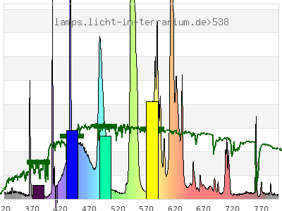 total ( 0 nm - 0 nm) 200 µW/cm² = 2 W/m² UVC ( 0 nm - 280 nm) 0 µW/cm² = 0 W/m² non-terrestrial ( 0 nm - 290 nm) 0.0203 µW/cm² = 0.000203 W/m² total2 ( 250 nm - 880 nm) 200 µW/cm² = 2 W/m² UVB (EU) ( 280 nm - 315 nm) 0.879 µW/cm² = 0.00879 W/m² UVB (US) ( 280 nm - 320 nm) 1.14 µW/cm² = 0.0114 W/m² UVA+B ( 280 nm - 380 nm) 5.78 µW/cm² = 0.0578 W/m² Solar UVB ( 290 nm - 315 nm) 0.859 µW/cm² = 0.00859 W/m² UVA D3 regulating ( 315 nm - 335 nm) 1.2 µW/cm² = 0.012 W/m² UVA (EU) ( 315 nm - 380 nm) 4.9 µW/cm² = 0.049 W/m² UVA2 (medical definition) ( 320 nm - 340 nm) 1.29 µW/cm² = 0.0129 W/m² UVA (US) ( 320 nm - 380 nm) 4.64 µW/cm² = 0.0464 W/m² UVA1 (variant) ( 335 nm - 380 nm) 3.7 µW/cm² = 0.037 W/m² UVA1 (medical) ( 340 nm - 400 nm) 3.87 µW/cm² = 0.0387 W/m² vis. UVA ( 350 nm - 380 nm) 2.73 µW/cm² = 0.0273 W/m² VIS Rep3 ( 350 nm - 600 nm) 134 µW/cm² = 1.34 W/m² VIS Rep4 ( 350 nm - 700 nm) 187 µW/cm² = 1.87 W/m² purple ( 380 nm - 420 nm) 6.19 µW/cm² = 0.0619 W/m² VIS ( 380 nm - 780 nm) 193 µW/cm² = 1.93 W/m² VIS2 ( 400 nm - 680 nm) 182 µW/cm² = 1.82 W/m² PAR ( 400 nm - 700 nm) 184 µW/cm² = 1.84 W/m² tmp ( 400 nm - 1100 nm) 194 µW/cm² = 1.94 W/m² blue ( 420 nm - 490 nm) 44.7 µW/cm² = 0.447 W/m² green ( 490 nm - 575 nm) 60.9 µW/cm² = 0.609 W/m² yellow ( 575 nm - 585 nm) 7.32 µW/cm² = 0.0732 W/m² orange ( 585 nm - 650 nm) 59.4 µW/cm² = 0.594 W/m² red ( 650 nm - 780 nm) 14.6 µW/cm² = 0.146 W/m² IR2 ( 655 nm - 685 nm) 3.4 µW/cm² = 0.034 W/m² IRA ( 700 nm - 1400 nm) 9.73 µW/cm² = 0.0973 W/m² IRB ( 1400 nm - 3000 nm) 0 µW/cm² = 0 W/m²
