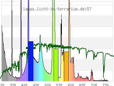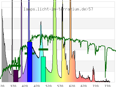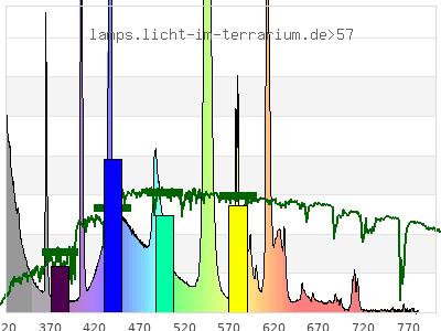 total ( 0 nm - 0 nm) 821 µW/cm² = 8.21 W/m² UVC ( 0 nm - 280 nm) 2.45 µW/cm² = 0.0245 W/m² non-terrestrial ( 0 nm - 290 nm) 10.9 µW/cm² = 0.109 W/m² total2 ( 250 nm - 880 nm) 821 µW/cm² = 8.21 W/m² UVB (EU) ( 280 nm - 315 nm) 127 µW/cm² = 1.27 W/m² UVB (US) ( 280 nm - 320 nm) 150 µW/cm² = 1.5 W/m² UVA+B ( 280 nm - 380 nm) 232 µW/cm² = 2.32 W/m² Solar UVB ( 290 nm - 315 nm) 119 µW/cm² = 1.19 W/m² UVA D3 regulating ( 315 nm - 335 nm) 63.9 µW/cm² = 0.639 W/m² UVA (EU) ( 315 nm - 380 nm) 104 µW/cm² = 1.04 W/m² UVA2 (medical definition) ( 320 nm - 340 nm) 48.3 µW/cm² = 0.483 W/m² UVA (US) ( 320 nm - 380 nm) 81.3 µW/cm² = 0.813 W/m² UVA1 (variant) ( 335 nm - 380 nm) 40.4 µW/cm² = 0.404 W/m² UVA1 (medical) ( 340 nm - 400 nm) 38.1 µW/cm² = 0.381 W/m² vis. UVA ( 350 nm - 380 nm) 24 µW/cm² = 0.24 W/m² VIS Rep3 ( 350 nm - 600 nm) 513 µW/cm² = 5.13 W/m² VIS Rep4 ( 350 nm - 700 nm) 602 µW/cm² = 6.02 W/m² purple ( 380 nm - 420 nm) 42.3 µW/cm² = 0.423 W/m² VIS ( 380 nm - 780 nm) 587 µW/cm² = 5.87 W/m² VIS2 ( 400 nm - 680 nm) 568 µW/cm² = 5.68 W/m² PAR ( 400 nm - 700 nm) 573 µW/cm² = 5.73 W/m² tmp ( 400 nm - 1100 nm) 582 µW/cm² = 5.82 W/m² blue ( 420 nm - 490 nm) 200 µW/cm² = 2 W/m² green ( 490 nm - 575 nm) 200 µW/cm² = 2 W/m² yellow ( 575 nm - 585 nm) 26.4 µW/cm² = 0.264 W/m² orange ( 585 nm - 650 nm) 95.7 µW/cm² = 0.957 W/m² red ( 650 nm - 780 nm) 21.9 µW/cm² = 0.219 W/m² IR2 ( 655 nm - 685 nm) 7.52 µW/cm² = 0.0752 W/m² IRA ( 700 nm - 1400 nm) 9.11 µW/cm² = 0.0911 W/m² IRB ( 1400 nm - 3000 nm) 0 µW/cm² = 0 W/m²