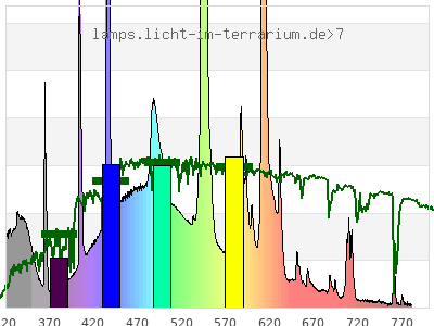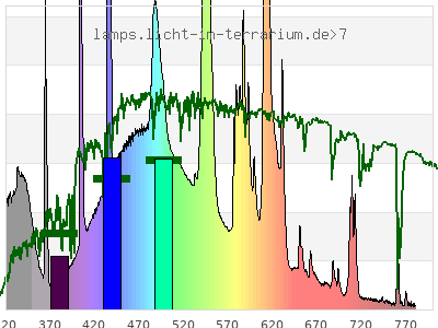 total ( 0 nm - 0 nm) 700 µW/cm² = 7 W/m² UVC ( 0 nm - 280 nm) 0.931 µW/cm² = 0.00931 W/m² non-terrestrial ( 0 nm - 290 nm) 1.13 µW/cm² = 0.0113 W/m² total2 ( 250 nm - 880 nm) 700 µW/cm² = 7 W/m² UVB (EU) ( 280 nm - 315 nm) 8.52 µW/cm² = 0.0852 W/m² UVB (US) ( 280 nm - 320 nm) 14.1 µW/cm² = 0.141 W/m² UVA+B ( 280 nm - 380 nm) 73.2 µW/cm² = 0.732 W/m² Solar UVB ( 290 nm - 315 nm) 8.32 µW/cm² = 0.0832 W/m² UVA D3 regulating ( 315 nm - 335 nm) 24.8 µW/cm² = 0.248 W/m² UVA (EU) ( 315 nm - 380 nm) 64.6 µW/cm² = 0.646 W/m² UVA2 (medical definition) ( 320 nm - 340 nm) 26.8 µW/cm² = 0.268 W/m² UVA (US) ( 320 nm - 380 nm) 59.1 µW/cm² = 0.591 W/m² UVA1 (variant) ( 335 nm - 380 nm) 39.8 µW/cm² = 0.398 W/m² UVA1 (medical) ( 340 nm - 400 nm) 41.3 µW/cm² = 0.413 W/m² vis. UVA ( 350 nm - 380 nm) 20.1 µW/cm² = 0.201 W/m² VIS Rep3 ( 350 nm - 600 nm) 483 µW/cm² = 4.83 W/m² VIS Rep4 ( 350 nm - 700 nm) 627 µW/cm² = 6.27 W/m² purple ( 380 nm - 420 nm) 40.6 µW/cm² = 0.406 W/m² VIS ( 380 nm - 780 nm) 626 µW/cm² = 6.26 W/m² VIS2 ( 400 nm - 680 nm) 592 µW/cm² = 5.92 W/m² PAR ( 400 nm - 700 nm) 598 µW/cm² = 5.98 W/m² tmp ( 400 nm - 1100 nm) 617 µW/cm² = 6.17 W/m² blue ( 420 nm - 490 nm) 167 µW/cm² = 1.67 W/m² green ( 490 nm - 575 nm) 202 µW/cm² = 2.02 W/m² yellow ( 575 nm - 585 nm) 22.1 µW/cm² = 0.221 W/m² orange ( 585 nm - 650 nm) 156 µW/cm² = 1.56 W/m² red ( 650 nm - 780 nm) 37.8 µW/cm² = 0.378 W/m² IR2 ( 655 nm - 685 nm) 10.8 µW/cm² = 0.108 W/m² IRA ( 700 nm - 1400 nm) 19 µW/cm² = 0.19 W/m² IRB ( 1400 nm - 3000 nm) 0 µW/cm² = 0 W/m²