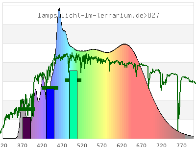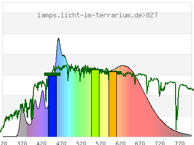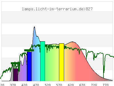 total ( 0 nm - 0 nm) 12700 µW/cm² = 127 W/m² UVC ( 0 nm - 280 nm) 0 µW/cm² = 0 W/m² non-terrestrial ( 0 nm - 290 nm) 0 µW/cm² = 0 W/m² total2 ( 250 nm - 880 nm) 12700 µW/cm² = 127 W/m² UVB (EU) ( 280 nm - 315 nm) 1.21 µW/cm² = 0.0121 W/m² UVB (US) ( 280 nm - 320 nm) 2.64 µW/cm² = 0.0264 W/m² UVA+B ( 280 nm - 380 nm) 292 µW/cm² = 2.92 W/m² Solar UVB ( 290 nm - 315 nm) 1.21 µW/cm² = 0.0121 W/m² UVA D3 regulating ( 315 nm - 335 nm) 5.33 µW/cm² = 0.0533 W/m² UVA (EU) ( 315 nm - 380 nm) 291 µW/cm² = 2.91 W/m² UVA2 (medical definition) ( 320 nm - 340 nm) 5.1 µW/cm² = 0.051 W/m² UVA (US) ( 320 nm - 380 nm) 289 µW/cm² = 2.89 W/m² UVA1 (variant) ( 335 nm - 380 nm) 286 µW/cm² = 2.86 W/m² UVA1 (medical) ( 340 nm - 400 nm) 492 µW/cm² = 4.92 W/m² vis. UVA ( 350 nm - 380 nm) 282 µW/cm² = 2.82 W/m² VIS Rep3 ( 350 nm - 600 nm) 8300 µW/cm² = 83 W/m² VIS Rep4 ( 350 nm - 700 nm) 12000 µW/cm² = 120 W/m² purple ( 380 nm - 420 nm) 644 µW/cm² = 6.44 W/m² VIS ( 380 nm - 780 nm) 12300 µW/cm² = 123 W/m² VIS2 ( 400 nm - 680 nm) 11000 µW/cm² = 110 W/m² PAR ( 400 nm - 700 nm) 11500 µW/cm² = 115 W/m² tmp ( 400 nm - 1100 nm) 12200 µW/cm² = 122 W/m² blue ( 420 nm - 490 nm) 2780 µW/cm² = 27.8 W/m² green ( 490 nm - 575 nm) 3570 µW/cm² = 35.7 W/m² yellow ( 575 nm - 585 nm) 416 µW/cm² = 4.16 W/m² orange ( 585 nm - 650 nm) 2800 µW/cm² = 28 W/m² red ( 650 nm - 780 nm) 2100 µW/cm² = 21 W/m² IR2 ( 655 nm - 685 nm) 968 µW/cm² = 9.68 W/m² IRA ( 700 nm - 1400 nm) 691 µW/cm² = 6.91 W/m² IRB ( 1400 nm - 3000 nm) 0 µW/cm² = 0 W/m²