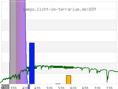 total ( 0 nm - 0 nm) 26.7 µW/cm² = 0.267 W/m² UVC ( 0 nm - 280 nm) 0 µW/cm² = 0 W/m² non-terrestrial ( 0 nm - 290 nm) 0.213 µW/cm² = 0.00213 W/m² total2 ( 250 nm - 880 nm) 26.7 µW/cm² = 0.267 W/m² UVB (EU) ( 280 nm - 315 nm) 2.15 µW/cm² = 0.0215 W/m² UVB (US) ( 280 nm - 320 nm) 2.15 µW/cm² = 0.0215 W/m² UVA+B ( 280 nm - 380 nm) 9.11 µW/cm² = 0.0911 W/m² Solar UVB ( 290 nm - 315 nm) 1.93 µW/cm² = 0.0193 W/m² UVA D3 regulating ( 315 nm - 335 nm) -0.0159 µW/cm² = -0.000159 W/m² UVA (EU) ( 315 nm - 380 nm) 6.96 µW/cm² = 0.0696 W/m² UVA2 (medical definition) ( 320 nm - 340 nm) -0.0211 µW/cm² = -0.000211 W/m² UVA (US) ( 320 nm - 380 nm) 6.96 µW/cm² = 0.0696 W/m² UVA1 (variant) ( 335 nm - 380 nm) 6.98 µW/cm² = 0.0698 W/m² UVA1 (medical) ( 340 nm - 400 nm) 21.4 µW/cm² = 0.214 W/m² vis. UVA ( 350 nm - 380 nm) 6.99 µW/cm² = 0.0699 W/m² VIS Rep3 ( 350 nm - 600 nm) 24.6 µW/cm² = 0.246 W/m² VIS Rep4 ( 350 nm - 700 nm) 24.6 µW/cm² = 0.246 W/m² purple ( 380 nm - 420 nm) 17.5 µW/cm² = 0.175 W/m² VIS ( 380 nm - 780 nm) 17.6 µW/cm² = 0.176 W/m² VIS2 ( 400 nm - 680 nm) 3.18 µW/cm² = 0.0318 W/m² PAR ( 400 nm - 700 nm) 3.18 µW/cm² = 0.0318 W/m² tmp ( 400 nm - 1100 nm) 3.18 µW/cm² = 0.0318 W/m² blue ( 420 nm - 490 nm) 0.0351 µW/cm² = 0.000351 W/m² green ( 490 nm - 575 nm) 0 µW/cm² = 0 W/m² yellow ( 575 nm - 585 nm) 0 µW/cm² = 0 W/m² orange ( 585 nm - 650 nm) 0 µW/cm² = 0 W/m² red ( 650 nm - 780 nm) 0 µW/cm² = 0 W/m² IR2 ( 655 nm - 685 nm) 0 µW/cm² = 0 W/m² IRA ( 700 nm - 1400 nm) 0 µW/cm² = 0 W/m² IRB ( 1400 nm - 3000 nm) 0 µW/cm² = 0 W/m²