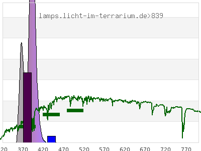 Erythema 0.689 UV-Index Pyrimidine dimerization of DNA 1.1 µW/cm² Photoceratitis 1.08 µW/cm² Photoconjunctivitis 0.0756 µW/cm² DNA Damage 0.243 Vitamin D3 1.86 µW/cm² Photosynthesis 2.02 µW/cm² Luminosity 0.196 lx Human L-Cone 0.0278 µW/cm² Human M-Cone 0.0274 µW/cm² Human S-Cone 0.695 µW/cm² CIE X 0.185 µW/cm² CIE Y 0.00535 µW/cm² CIE Z 0.88 µW/cm² PAR PPFD 0.258 µmol/m²/s Extinction preD3 6.92 e-3*m²/mol Extinction Tachysterol 27.7 e-3*m²/mol Exctincition PreD3 4330 m²/mol Extinction Lumisterol 5.65 m²/mol Exctincition Tachysterol 35500 m²/mol Extinction 7DHC 7.87 m²/mol L-Cone 0.00158 µW/cm² M-Cone 0.0333 µW/cm² S-Cone 3.9 µW/cm² U-Cone 43.3 µW/cm² UVR - ICNIRP 2004 0.91 Rel Biol Eff Melatonin Supression 1.37 µW/cm² Blue Light Hazard 1.45 µW/cm² (7400 µW/cm² per 1000 lx) CIE 174:2006 PreVit D3 1.9 µW/cm² Lumen Reptil 71.5 "pseudo-lx" Vitamin D3 Degradation 0.827 µW/cm² Actinic UV 0.902 µW/cm² (46000 mW/klm) Exctincition Lumisterol 6590 m²/mol Exctincition 7DHC 9160 m²/mol Exctincition Toxisterols 297 m²/mol