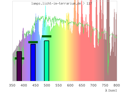 Erythema 3.11 UV-Index Pyrimidine dimerization of DNA 4.75 µW/cm² Photoceratitis 4.2 µW/cm² Photoconjunctivitis 2.41 µW/cm² DNA Damage 3.38 Vitamin D3 6.19 µW/cm² Photosynthesis 229 µW/cm² Luminosity 831 lx Human L-Cone 126 µW/cm² Human M-Cone 100 µW/cm² Human S-Cone 56.3 µW/cm² CIE X 117 µW/cm² CIE Y 115 µW/cm² CIE Z 104 µW/cm² PAR PPFD 15.5 µmol/m²/s Extinction preD3 47.9 e-3*m²/mol Extinction Tachysterol 150 e-3*m²/mol Exctincition PreD3 37700 m²/mol Extinction Lumisterol 40.4 m²/mol Exctincition Tachysterol 193000 m²/mol Extinction 7DHC 51.2 m²/mol L-Cone 110 µW/cm² M-Cone 103 µW/cm² S-Cone 94.7 µW/cm² U-Cone 75.6 µW/cm² UVR - ICNIRP 2004 5.29 Rel Biol Eff Melatonin Supression 85.8 µW/cm² Blue Light Hazard 65.5 µW/cm² (78.8 µW/cm² per 1000 lx) CIE 174:2006 PreVit D3 6.36 µW/cm² Lumen Reptil 878 "pseudo-lx" Vitamin D3 Degradation 4.68 µW/cm² Actinic UV 5.25 µW/cm² (63.1 mW/klm) Exctincition Lumisterol 45900 m²/mol Exctincition 7DHC 56400 m²/mol Exctincition Toxisterols 6840 m²/mol