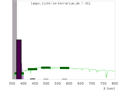 total ( 0 nm - 0 nm) 34.9 µW/cm² = 0.349 W/m² UVC ( 0 nm - 280 nm) 0.169 µW/cm² = 0.00169 W/m² non-terrestrial ( 0 nm - 290 nm) 1.78 µW/cm² = 0.0178 W/m² total2 ( 250 nm - 880 nm) 34.9 µW/cm² = 0.349 W/m² UVB (EU) ( 280 nm - 315 nm) 17.2 µW/cm² = 0.172 W/m² UVB (US) ( 280 nm - 320 nm) 20.9 µW/cm² = 0.209 W/m² UVA+B ( 280 nm - 380 nm) 34.5 µW/cm² = 0.345 W/m² Solar UVB ( 290 nm - 315 nm) 15.6 µW/cm² = 0.156 W/m² UVA D3 regulating ( 315 nm - 335 nm) 10.9 µW/cm² = 0.109 W/m² UVA (EU) ( 315 nm - 380 nm) 17.2 µW/cm² = 0.172 W/m² UVA2 (medical definition) ( 320 nm - 340 nm) 8.79 µW/cm² = 0.0879 W/m² UVA (US) ( 320 nm - 380 nm) 13.6 µW/cm² = 0.136 W/m² UVA1 (variant) ( 335 nm - 380 nm) 6.31 µW/cm² = 0.0631 W/m² UVA1 (medical) ( 340 nm - 400 nm) 5.03 µW/cm² = 0.0503 W/m² vis. UVA ( 350 nm - 380 nm) 2.77 µW/cm² = 0.0277 W/m² VIS Rep3 ( 350 nm - 600 nm) 3.01 µW/cm² = 0.0301 W/m² VIS Rep4 ( 350 nm - 700 nm) 3.01 µW/cm² = 0.0301 W/m² purple ( 380 nm - 420 nm) 0.246 µW/cm² = 0.00246 W/m² VIS ( 380 nm - 780 nm) 0.246 µW/cm² = 0.00246 W/m² VIS2 ( 400 nm - 680 nm) 0 µW/cm² = 0 W/m² PAR ( 400 nm - 700 nm) 0 µW/cm² = 0 W/m² tmp ( 400 nm - 1100 nm) 0 µW/cm² = 0 W/m² blue ( 420 nm - 490 nm) 0 µW/cm² = 0 W/m² green ( 490 nm - 575 nm) 0 µW/cm² = 0 W/m² yellow ( 575 nm - 585 nm) 0 µW/cm² = 0 W/m² orange ( 585 nm - 650 nm) 0 µW/cm² = 0 W/m² red ( 650 nm - 780 nm) 0 µW/cm² = 0 W/m² IRA ( 700 nm - 1400 nm) 0 µW/cm² = 0 W/m² IR2 ( 720 nm - 1100 nm) 0 µW/cm² = 0 W/m² IRB ( 1400 nm - 3000 nm) 0 µW/cm² = 0 W/m²