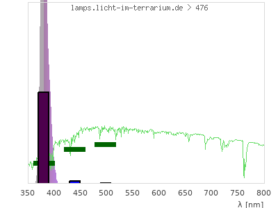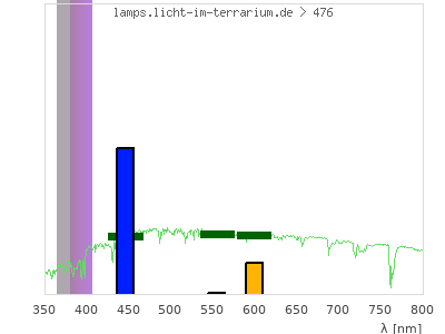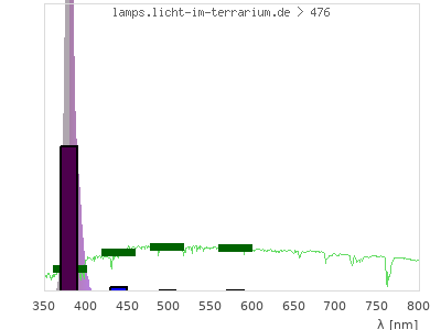 total ( 0 nm - 0 nm) 12.8 µW/cm² = 0.128 W/m² UVC ( 0 nm - 280 nm) 0 µW/cm² = 0 W/m² non-terrestrial ( 0 nm - 290 nm) 0 µW/cm² = 0 W/m² total2 ( 250 nm - 880 nm) 12.8 µW/cm² = 0.128 W/m² UVB (EU) ( 280 nm - 315 nm) 0 µW/cm² = 0 W/m² UVB (US) ( 280 nm - 320 nm) 0 µW/cm² = 0 W/m² UVA+B ( 280 nm - 380 nm) 5.88 µW/cm² = 0.0588 W/m² Solar UVB ( 290 nm - 315 nm) 0 µW/cm² = 0 W/m² UVA D3 regulating ( 315 nm - 335 nm) 0 µW/cm² = 0 W/m² UVA (EU) ( 315 nm - 380 nm) 5.88 µW/cm² = 0.0588 W/m² UVA2 (medical definition) ( 320 nm - 340 nm) 0 µW/cm² = 0 W/m² UVA (US) ( 320 nm - 380 nm) 5.88 µW/cm² = 0.0588 W/m² UVA1 (variant) ( 335 nm - 380 nm) 5.88 µW/cm² = 0.0588 W/m² UVA1 (medical) ( 340 nm - 400 nm) 12.7 µW/cm² = 0.127 W/m² vis. UVA ( 350 nm - 380 nm) 5.88 µW/cm² = 0.0588 W/m² VIS Rep3 ( 350 nm - 600 nm) 12.8 µW/cm² = 0.128 W/m² VIS Rep4 ( 350 nm - 700 nm) 12.8 µW/cm² = 0.128 W/m² purple ( 380 nm - 420 nm) 6.9 µW/cm² = 0.069 W/m² VIS ( 380 nm - 780 nm) 6.9 µW/cm² = 0.069 W/m² VIS2 ( 400 nm - 680 nm) 0.0891 µW/cm² = 0.000891 W/m² PAR ( 400 nm - 700 nm) 0.0891 µW/cm² = 0.000891 W/m² tmp ( 400 nm - 1100 nm) 0.0891 µW/cm² = 0.000891 W/m² blue ( 420 nm - 490 nm) 0 µW/cm² = 0 W/m² green ( 490 nm - 575 nm) 0 µW/cm² = 0 W/m² yellow ( 575 nm - 585 nm) 0 µW/cm² = 0 W/m² orange ( 585 nm - 650 nm) 0 µW/cm² = 0 W/m² red ( 650 nm - 780 nm) 0 µW/cm² = 0 W/m² IRA ( 700 nm - 1400 nm) 0 µW/cm² = 0 W/m² IR2 ( 720 nm - 1100 nm) 0 µW/cm² = 0 W/m² IRB ( 1400 nm - 3000 nm) 0 µW/cm² = 0 W/m²