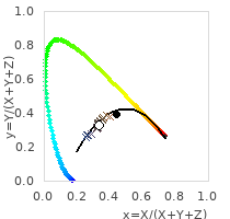 From these three numbers the colour coordinate and the correlated colour temperature for humans are calculated using the CIE standard method. I adapted this concept to a "3 cone reptile (M,S,U)" and a "4 cone reptile (L,M,S,U)". I am sure, that this adaption to other colour spaces makes sense mathematically and this is also done in scientific research regarding colour vision of animals, however I have not seen calculation of colour temperatures for other animals in the scientific literature. Even if it is hypothetical, at least this shows, how arbitrary the colour temperature is, and that the colour temperature calculated for humans does not apply to reptiles. The colour spaces also show the colour coordinates of different phases of daylight ((ids 1, 338 – 451, 511 – 513 ), indicated by crosses, coloured in the appriximate colour perceived by a human.