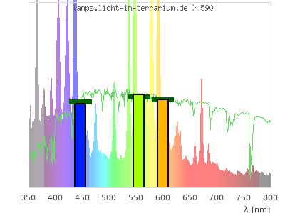 total ( 0 nm - 0 nm) 8660 µW/cm² = 86.6 W/m² UVC ( 0 nm - 280 nm) 0 µW/cm² = 0 W/m² non-terrestrial ( 0 nm - 290 nm) 0 µW/cm² = 0 W/m² total2 ( 250 nm - 880 nm) 8640 µW/cm² = 86.4 W/m² UVB (EU) ( 280 nm - 315 nm) 41.6 µW/cm² = 0.416 W/m² UVB (US) ( 280 nm - 320 nm) 50.6 µW/cm² = 0.506 W/m² UVA+B ( 280 nm - 380 nm) 1080 µW/cm² = 10.8 W/m² Solar UVB ( 290 nm - 315 nm) 41.6 µW/cm² = 0.416 W/m² UVA D3 regulating ( 315 nm - 335 nm) 68.3 µW/cm² = 0.683 W/m² UVA (EU) ( 315 nm - 380 nm) 1040 µW/cm² = 10.4 W/m² UVA2 (medical definition) ( 320 nm - 340 nm) 88.3 µW/cm² = 0.883 W/m² UVA (US) ( 320 nm - 380 nm) 1030 µW/cm² = 10.3 W/m² UVA1 (variant) ( 335 nm - 380 nm) 973 µW/cm² = 9.73 W/m² UVA1 (medical) ( 340 nm - 400 nm) 1360 µW/cm² = 13.6 W/m² vis. UVA ( 350 nm - 380 nm) 869 µW/cm² = 8.69 W/m² VIS Rep3 ( 350 nm - 600 nm) 6470 µW/cm² = 64.7 W/m² VIS Rep4 ( 350 nm - 700 nm) 7480 µW/cm² = 74.8 W/m² purple ( 380 nm - 420 nm) 1090 µW/cm² = 10.9 W/m² VIS ( 380 nm - 780 nm) 6950 µW/cm² = 69.5 W/m² VIS2 ( 400 nm - 680 nm) 6040 µW/cm² = 60.4 W/m² PAR ( 400 nm - 700 nm) 6190 µW/cm² = 61.9 W/m² tmp ( 400 nm - 1100 nm) 7160 µW/cm² = 71.6 W/m² blue ( 420 nm - 490 nm) 1580 µW/cm² = 15.8 W/m² green ( 490 nm - 575 nm) 1850 µW/cm² = 18.5 W/m² yellow ( 575 nm - 585 nm) 434 µW/cm² = 4.34 W/m² orange ( 585 nm - 650 nm) 1210 µW/cm² = 12.1 W/m² red ( 650 nm - 780 nm) 792 µW/cm² = 7.92 W/m² IRA ( 700 nm - 1400 nm) 972 µW/cm² = 9.72 W/m² IR2 ( 720 nm - 1100 nm) 876 µW/cm² = 8.76 W/m² IRB ( 1400 nm - 3000 nm) 0 µW/cm² = 0 W/m²