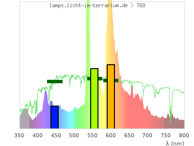 total ( 0 nm - 0 nm) 22.1 µW/cm² = 0.221 W/m² UVC ( 0 nm - 280 nm) 0 µW/cm² = 0 W/m² non-terrestrial ( 0 nm - 290 nm) 0 µW/cm² = 0 W/m² total2 ( 250 nm - 880 nm) 13.8 µW/cm² = 0.138 W/m² UVB (EU) ( 280 nm - 315 nm) 0 µW/cm² = 0 W/m² UVB (US) ( 280 nm - 320 nm) 0 µW/cm² = 0 W/m² UVA+B ( 280 nm - 380 nm) 0.42 µW/cm² = 0.0042 W/m² Solar UVB ( 290 nm - 315 nm) 0 µW/cm² = 0 W/m² UVA D3 regulating ( 315 nm - 335 nm) 0 µW/cm² = 0 W/m² UVA (EU) ( 315 nm - 380 nm) 0.42 µW/cm² = 0.0042 W/m² UVA2 (medical definition) ( 320 nm - 340 nm) 0 µW/cm² = 0 W/m² UVA (US) ( 320 nm - 380 nm) 0.42 µW/cm² = 0.0042 W/m² UVA1 (variant) ( 335 nm - 380 nm) 0.42 µW/cm² = 0.0042 W/m² UVA1 (medical) ( 340 nm - 400 nm) 0.596 µW/cm² = 0.00596 W/m² vis. UVA ( 350 nm - 380 nm) 0.42 µW/cm² = 0.0042 W/m² VIS Rep3 ( 350 nm - 600 nm) 7.45 µW/cm² = 0.0745 W/m² VIS Rep4 ( 350 nm - 700 nm) 11.2 µW/cm² = 0.112 W/m² purple ( 380 nm - 420 nm) 0.535 µW/cm² = 0.00535 W/m² VIS ( 380 nm - 780 nm) 11.6 µW/cm² = 0.116 W/m² VIS2 ( 400 nm - 680 nm) 10.2 µW/cm² = 0.102 W/m² PAR ( 400 nm - 700 nm) 10.6 µW/cm² = 0.106 W/m² tmp ( 400 nm - 1100 nm) 14.5 µW/cm² = 0.145 W/m² blue ( 420 nm - 490 nm) 1.29 µW/cm² = 0.0129 W/m² green ( 490 nm - 575 nm) 3.07 µW/cm² = 0.0307 W/m² yellow ( 575 nm - 585 nm) 0.345 µW/cm² = 0.00345 W/m² orange ( 585 nm - 650 nm) 4.33 µW/cm² = 0.0433 W/m² red ( 650 nm - 780 nm) 2.07 µW/cm² = 0.0207 W/m² IRA ( 700 nm - 1400 nm) 6.26 µW/cm² = 0.0626 W/m² IR2 ( 720 nm - 1100 nm) 3.61 µW/cm² = 0.0361 W/m² IRB ( 1400 nm - 3000 nm) 4.6 µW/cm² = 0.046 W/m²