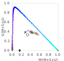 From these three numbers the colour coordinate and the correlated colour temperature for humans are calculated using the CIE standard method. I adapted this concept to a "3 cone reptile (M,S,U)" and a "4 cone reptile (L,M,S,U)". I am sure, that this adaption to other colour spaces makes sense mathematically and this is also done in scientific research regarding colour vision of animals, however I have not seen calculation of colour temperatures for other animals in the scientific literature. Even if it is hypothetical, at least this shows, how arbitrary the colour temperature is, and that the colour temperature calculated for humans does not apply to reptiles. The colour spaces also show the colour coordinates of different phases of daylight ((ids 1, 338 – 451, 511 – 513 ), indicated by crosses, coloured in the appriximate colour perceived by a human.